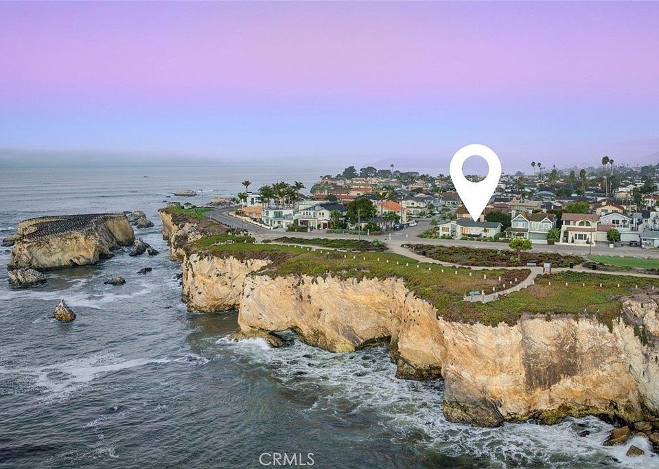Experience unobstructed ocean views and the serenity of California’s Central Coast from this rare direct ocean facing single-level home in the heart of Shell Beach. Set on a large 5,619 SF corner lot directly facing the ocean across from Dinosaur Caves Park, this 3-bed, 2-bath residence captures sweeping ocean vistas stretching from the rugged dinosaur caves coastline to Pismo Beach Pier and expands all the way to Point Sal. Inside, an open floor plan centers around a spacious living area where a fireplace and large picture windows frame the coastline. The living room flows into a well-appointed kitchen featuring quartz countertops and a breakfast bar. The private primary bedroom also enjoys picture windows and generous closet space. Additional highlights include a two-car garage, a versatile laundry/utility room, and a private backyard, which is an exceptional find in Shell Beach. A welcoming front porch extends the living space outdoors and is perfect for entertaining or unwinding in the coastal breeze. Thoughtfully upgraded with a modern aesthetic and owned solar power, the home blends classic beach-town charm with today’s efficiencies. Step outside and enjoy the walkable Shell Beach lifestyle; stroll to local restaurants, coffee houses, parks, and scenic coastal paths. With an unbeatable location, stylish updates, and stunning ocean views, this home embodies the ultimate Shell Beach experience.