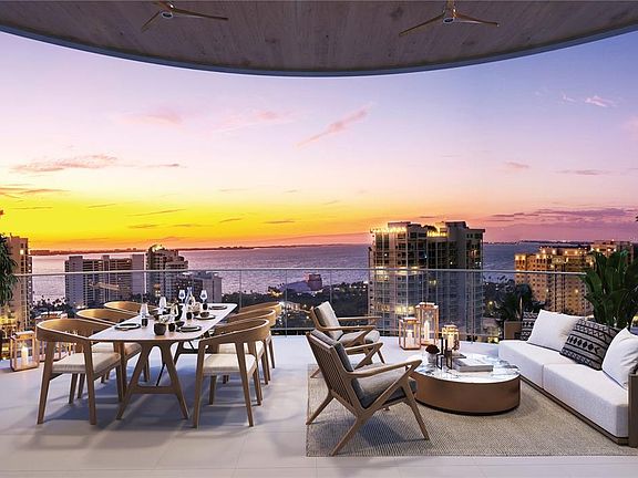 Pre-Construction. To be built. Discover a rare opportunity at The Edge Sarasota—where boutique living meets vibrant city life. Residence A is a premier 3-bedroom, 3-bathroom corner residence offering over 3,200 square feet of open, modern living in one of Sarasota’s most in-demand downtown locations. From the 6th floor, this light-filled residence wraps the northwest side of the building offers exceptional natural light with floor-to-ceiling walls of glass. Step out onto your generous wraparound terrace and watch the sunset over the city. Designed to be as unique as you, the home features a great room and separate living room that connects to a chef’s kitchen with Italian cabinetry, Wolf and Sub-Zero appliances including a gas cooktop, a large island with waterfall edge and a butler’s pantry for easy entertaining. A thoughtfully designed owners’ suite provides a true retreat with a gracious foyer, midnight bar, walk-in closet and en suite bathroom featuring dual vanities, private water closets, glass enclosed shower and soaking tub. Beyond your residence, enjoy a curated collection of luxury amenities including a resort-style pool deck with hot and cold plunge pools, cabanas and two outdoor kitchens. The owners’ club focuses on wellness and entertainment with a fully equipped fitness center complete with a yoga room and infrared sauna. Two treatments rooms afford plenty of space for your personal massage therapist or a physical therapy session. The social room includes a lounge, bar, game room and catering kitchen. For more intimate gatherings, reserve the private dining room featuring resident wine lockers and a separate bar area. The building’s boutique size—only 27 residences—creates a community feel in the heart of Sarasota’s vibrant Arts District. Walk to acclaimed restaurants, galleries, boutiques, and the Bayfront, embracing a lifestyle that combines culture, convenience, and sophistication. Construction is progressing with limited opportunities to customize your finishes—secure your place at The Edge today and invest in a rare downtown Sarasota address with lasting appeal. Images shown are artist renderings intended to illustrate the interior finishes and design concepts for this community.