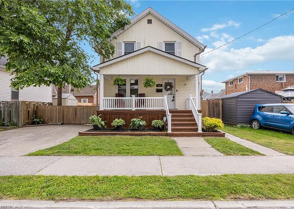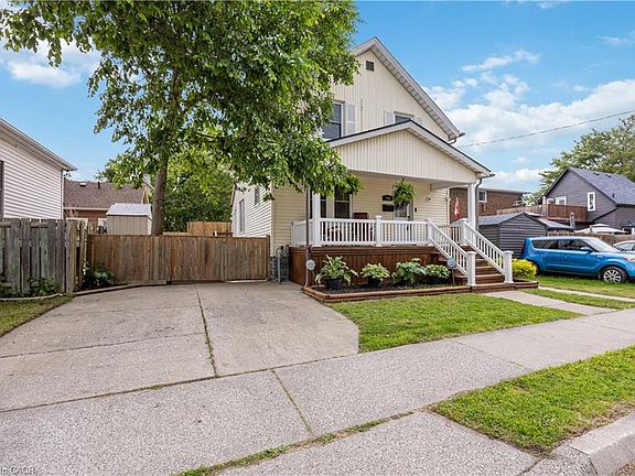 This fully renovated home is a rare find, combining timeless character with modern style. From the moment you arrive, the oversized front porch and fenced side yard with a large deck set the tone for relaxed summer living. Inside, the home has been completely updated with quality trim work highlighting every doorway and sun-filled window, engineered hardwood floors throughout, and a brand-new eat-in kitchen with stainless steel appliances and stylish cabinetry. A convenient main floor laundry and mudroom add function to the design, while two new full bathrooms, a spacious primary suite, and two additional bedrooms provide plenty of comfort. The finished basement offers a separate entrance, a two-piece bath, storage, and extra living space. Every detail has been redone, including plumbing, electrical, drywall, flooring, paint, and appliances, making this home move-in ready. With its prime location just minutes from downtown, parks, schools, and shops, this property is the perfect investment, starter home, or forever home.