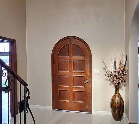 Steppingstone pathwaysChef-inspired kitchenMature palm treesBright sophisticated atmosphereMarble flooringGraceful arched entrywaysOversized sink