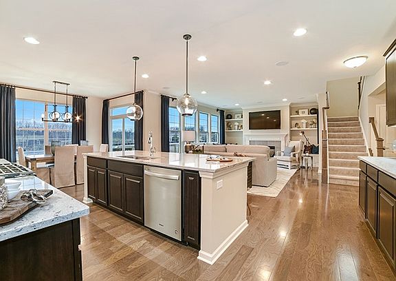 The Rainier features four bedrooms, a flex room, a large loft, two-and-a-half bathrooms, basement and a two-car garage, as well as features smart home automation technology. The flex space is easily accessible off the foyer and includes the option to turn into a guest suite with full bath. This space is very versatile and traditionally is used as a formal dining room or study. Beyond the foyer is the large, open space of the family room, kitchen and breakfast dining area. The modern kitchen hosts a wealth of space with a large center island with breakfast bar, plenty of counter space, a large walk-in pantry, beautiful Quartz countertops and Aristokraft cabinetry, and all stainless-steel GE appliances. The laundry room and family foyer are nicely nestled alongside the garage entryway. The generously-sized family room features lots of natural light.