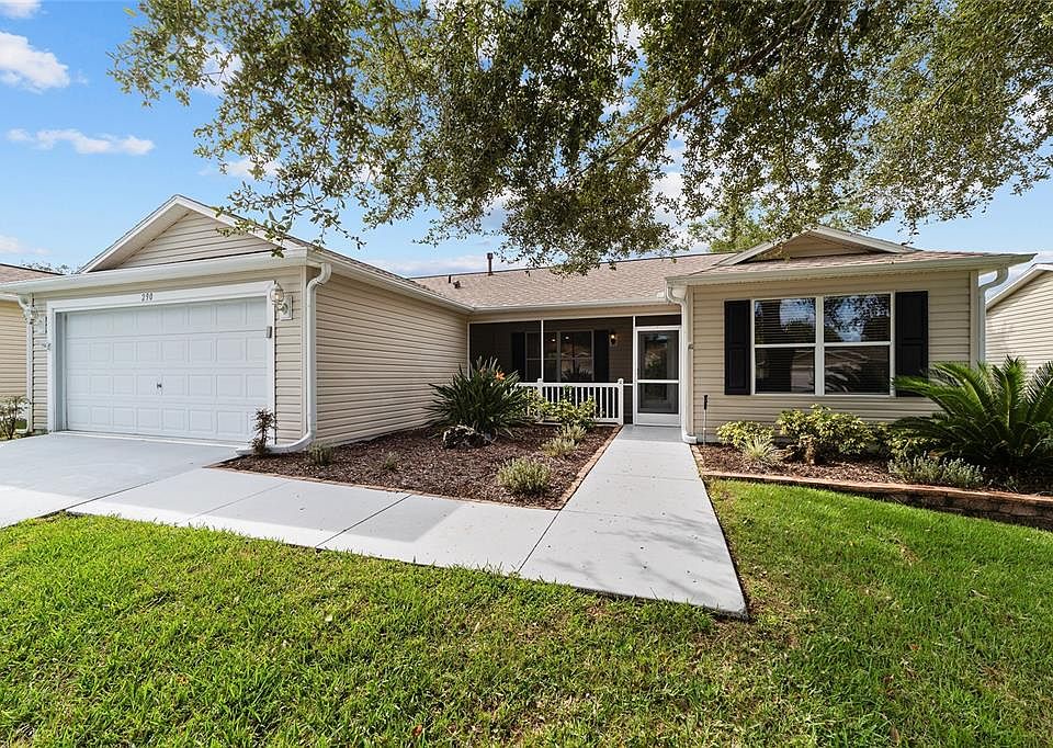 Located in the highly desirable Village of Caroline in The Villages, Florida. This beautifully maintained Amarillo model offers 1,527 square feet of heated living space with a split-bedroom, open-concept floor plan designed for comfort and functionality. Inside, you will find a bright and inviting great room that connects the living, dining, and kitchen areas for easy flow and everyday convenience. The kitchen includes abundant cabinetry, generous counter space, a breakfast bar, and plenty of natural light. The primary suite features two walk-in closets and a private en-suite bath. The guest wing provides two additional bedrooms and a full guest bath that offers privacy and comfort for family and visitors. Enjoy Florida living at its best on the enclosed lanai and the pergola-covered patio, both surrounded by mature, low-maintenance landscaping that creates a relaxing outdoor retreat. Recent updates include a new roof in 2021, an HVAC system replaced in 2016, and an aluminum pergola installed in 2021. The low remaining bond balance of $6,134.43 adds exceptional value and affordability to this move-in-ready home. Residents of the Village of Caroline enjoy convenient access to recreation centers, championship golf courses, swimming pools, shopping, dining, and entertainment. The Caroline Recreation Center is only half a mile away and offers a neighborhood pool, bocce and shuffleboard courts, and picnic areas. Lake Sumter Landing Market Square is located just 1.9 miles away and features waterfront dining, live entertainment, and boutique shopping. Nearby you will also find Glenview Country Club, Colony Plaza with Publix and local restaurants, and The Villages Regional Hospital for medical care and services. Additional highlights include a two-car garage with ample storage, an open-concept living area ideal for gatherings, and neutral finishes ready for personalization. The listing includes a 3D virtual tour, a video tour, and an interactive floor plan for convenient remote viewing. The home is also a short golf cart ride to Lake Sumter Landing and several nearby golf courses. This home combines thoughtful design, low maintenance, and a premier location within one of the most active communities in Florida. Experience the lifestyle, recreation, and convenience that make The Villages one of the most desirable destinations in the country. Schedule your private showing today and discover why 290 Jefferson Lane is the perfect place to call home.