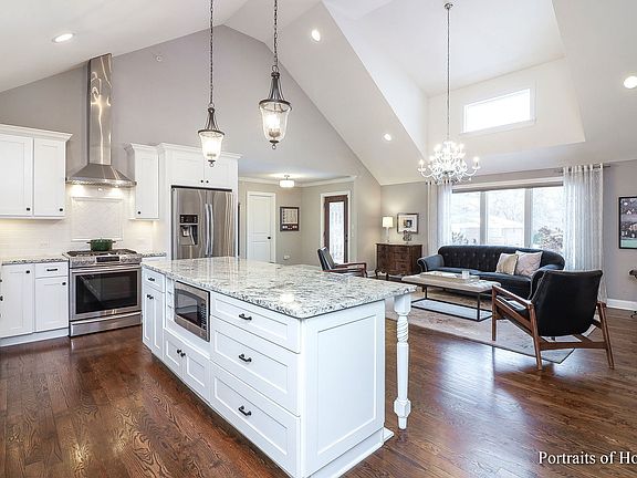 Thoughtfully expanded and renovated, 4 bedroom 3.1 bath Glen Ellyn ranch on quiet tree lined street! Enter to the gracious foyer and the home's striking open concept with soaring ceilings, hardwood floors and on-trend finishes throughout. The spacious, light-filled rooms include the cooks kitchen, central to the home, boasting 7ft island, crisp white cabinetry, stainless appliances, stone counters and full pantry. Truly an entertainer's dream home featuring living room with fireplace focal point and volume ceiling, separate dining room and large family room with patio door to the back yard and patio. Come in from the weather through the attached 2 car garage to the mud/laundry room with cubbies and double closet. Four bedrooms and 2.1 baths complete the 1st floor. The gorgeous primary suite features tray ceiling, a walk-in plus additional closet and space for a sitting area. The bath includes a double sink vanity and oversized, curb less shower, all in Carrera marble. The gracious open staircase with picture window leads to the finished basement, offering 1200 square feet of additional living space. Find 5th bedroom with egress window, full bath, recreation room and storage room. This rare find, surrounded by beautiful homes is a few blocks to Park View Elementary and Glen Crest Jr High. Glenbard South, Village Links, Health Trak Tennis and Fitness Center, Panfish and Maryknoll Parks nearby. Easy access to I355, Butterfield Rd, Metra Train station and College of DuPage.