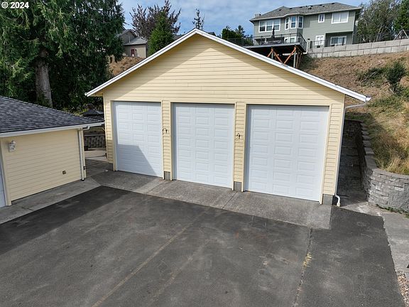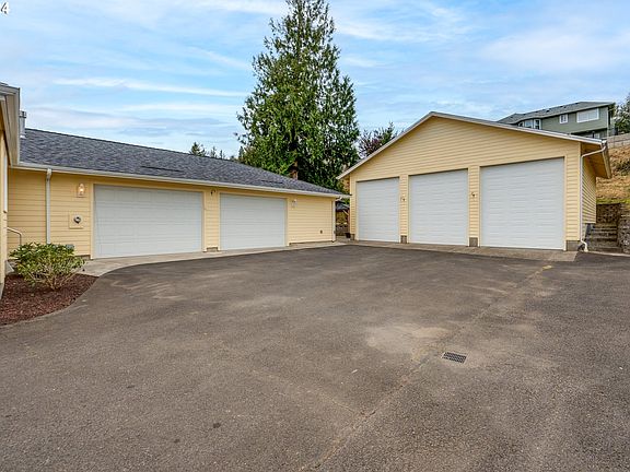 Discover effortless living in this well kept single-level home on Astoria's south slope, with stunning views of Youngs Bay. Enjoy an expansive, high end kitchen with solid wood cabinet doors, a large cooking island and a seating area. The living area has vaulted ceilings and gas fireplace with stone hearth and wood mantel. Accessibility features include a walk-in shower & step-in soaking tub. With a heated, attached garage with a work area, plus a large detached oversize garage that is perfect for boat storage, workshop or both. Situated on an oversized lot, this property even has a spacious patio out back. Complete with an abundance of driveway parking, a heat pump and generator ready panel. Every detail has been thoughtfully designed to make it the perfect retreat to call home.