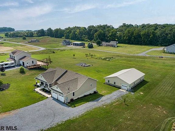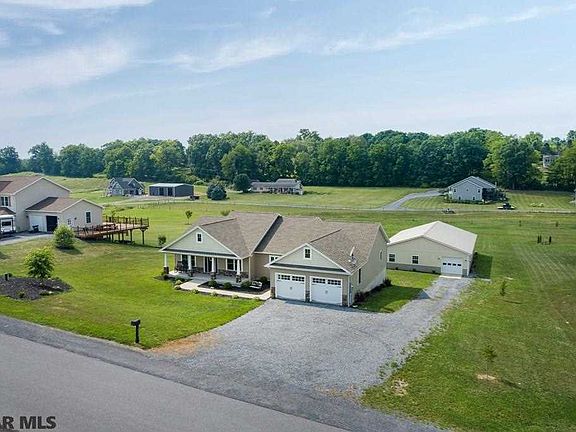 Wow-beautiful newer one level living plus a 40 x 60 accessory building with half bath and heat! Lingle Homes built, 3-bedroom ranch with 2 full baths plus a den. Beautiful neutral colors. Full unfinished lower level is walkout and pre plumbed for a bath. 2 car garage is oversized. Upstairs is light and bright with open living area and high ceilings. Elegant kitchen has white and black cabinets with granite counters and large island. Slide out drawers for storage and soft close drawers. Stainless steel appliances. Living area has a stone fireplace. Large eating area opens to a large, covered deck with stairs to lower patio and yard. Spacious owner's suite has a walk in closet and large vanity area with two sinks and walk-in shower. Situated in the lovely Sinking Creek Development, moments from 322/144 and Rt 45.