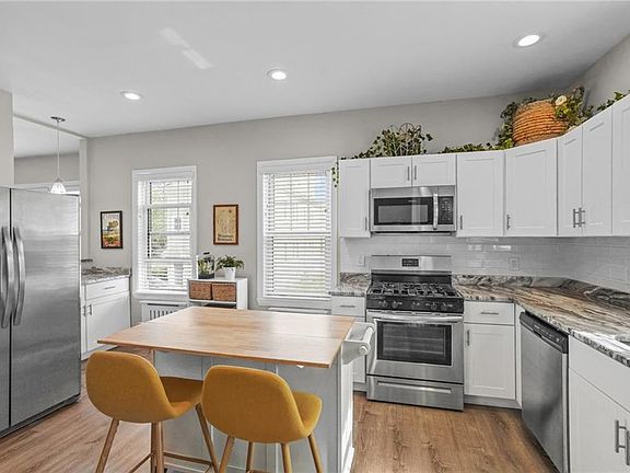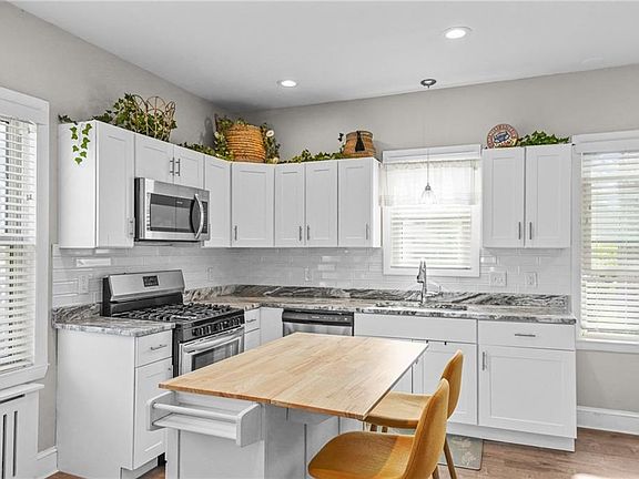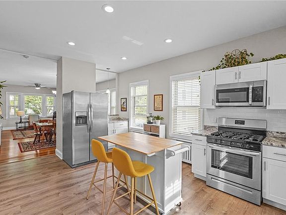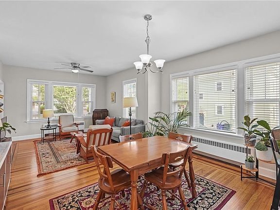 **Offers due Tuesday, June 20 by noon** This classic Elmhurst bungalow on a tree-lined street off Pleasant Valley Parkway is turnkey, well lit, and deceivingly spacious. Open first floor layout with two well-sized bedrooms and a full bathroom with tub. Natural hardwoods with detailed mahogany inlays shine throughout. An eat-in kitchen – but not the cramped kind – complete with bar seating, recessed lighting, expansive granite countertops, and stainless steel appliances. Head upstairs and enjoy the second level of living space spanning the full length of the house. The front enclave, now a comfortable home office, could be reimagined as a small child’s bedroom, walk-in closet, or even an in-law setup. Adjacent to the flex room is a half-bath with full-bath potential, and the primary bedroom. Slow down with a coffee and a conversation from the front porch or step back into the privacy of your fenced in backyard space. Detached garage with plenty of off-street parking. Laundry and additional expansion opportunities await in the basement. Convenient location minutes to downtown area, Amtrak from Boston commuters, short walk to Providence College.
