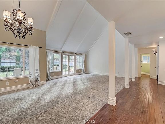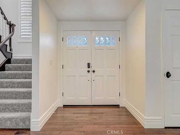 Stunning, Cape Cod home located in sought-after Anaheim Hills. Warm wood floors, custom wood finishes and large, light-catching windows throughout add to the elegance of the bright and open floorplan. Enter the double doors to the open and inviting living room offering gorgeous vaulted ceiling with impressive exposed beams and French doors to the backyard. The neighboring family room offers a cozy brick fireplace and opens to the kitchen. The Chef's kitchen is well appointed with granite counters, fresh white cabinets, dual ovens and a breakfast nook with French doors to the backyard. A main floor bedroom offers convenience and privacy for guests, or is perfect for use as a home office. Upstairs, the primary bedroom retreat offers a sitting area with a cozy brick fireplace, dual closets and an en-suite primary bathroom with a claw-footed soaking tub, dual sinks and a luxurious walk-in shower. Down the hall balcony overlooking the living room, a secondary bedroom is generously sized and features an en-suite full bathroom. Additional features include a whole-house fan, a three-car garage with plenty of storage space and an extended driveway for added parking. Relax or entertain in the sprawling backyard featuring a brick-lined patio and lush green grass.