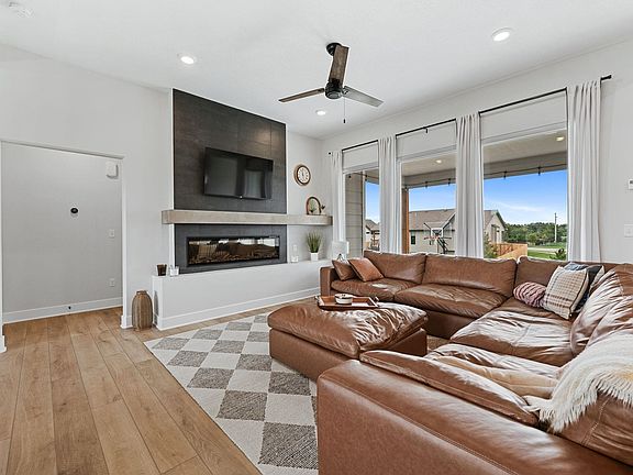 Welcome home! All that's missing from this better than new home is YOU! Luxury, custom, and convenience define this stunning 5-bedroom, 3-bathroom home in Goddard, Kansas, offering a lifestyle that far surpasses new construction. From the moment you arrive, the curb appeal is undeniable, with a meticulously manicured yard, trees, and a welcoming covered porch. Step inside to an expansive, open floor plan highlighted by soaring 10-foot ceilings, oversized windows, and an abundance of natural light. This is a home where every detail has been thoughtfully upgraded and expertly executed, a stark contrast to the costly and time-consuming upgrades of a new build. The chef's kitchen is the heart of the home, featuring a stunning waterfall island, high-end induction range/air fryer oven, and custom lighting. The open floor plan flows seamlessly to the dining and living areas, where an upgraded Dimplex fireplace creates an inviting focal point. The split-bedroom plan provides a private sanctuary in the primary suite, which includes a lavish custom tile shower and a large walk-in closet. The fully finished basement is an entertainer's dream, with a custom 6-foot island bar, space for a full-sized fridge, a second upgraded Dimplex fireplace, and a cleverly hidden Murphy door leading to a bonus space. Beyond the home's impressive features, you're not just buying a house—you're gaining a true sense of community. The neighborhood's incredible amenities are the perfect extension of your home, with a clubhouse that houses indoor pickleball courts, a gathering space, and a workout facility. Spend your summers at the community pool, complete with a firepit and relaxing lanais, or enjoy the greenspaces, ponds, basketball goals, and a playground. No expense was spared on the outdoor oasis, which is already perfected for you—no waiting for a new yard to grow. The property is fully fenced with elegant wrought iron, and features a covered porch, a large concrete patio, and a private, cedar-fenced firepit area. Extra storage and extra length was added to the garage to accommodate larger vehicles, and the property is enhanced with a whole-home water filter and softener, custom blinds (including electric for those hard to reach windows), and is even pre-wired for a hot tub. This one-owner custom build is not just a house; it's a move-in-ready, superior living experience that new construction simply cannot match.