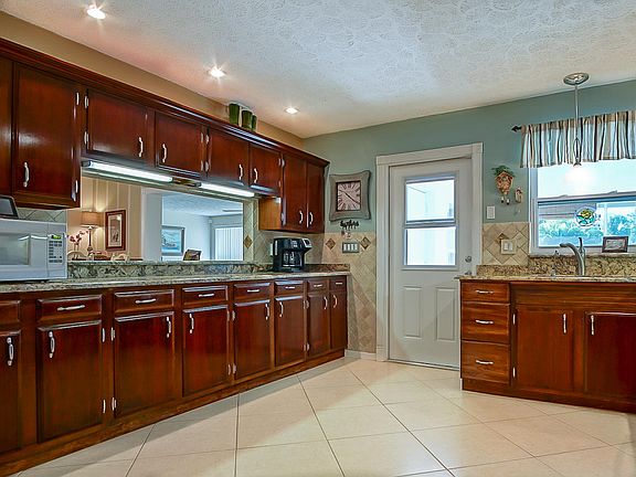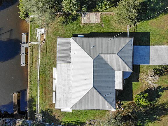 Perfect BOATERS HIDEAWAY! Newer dock, no fixed bridges. This home with 2 bedrooms and a den has a HUGE yard, metal roof, tile on diagonal throughout the home and so much more! Enjoy tile throughout the entire home, a large and charming kitchen with wood cabinets and granite counters providing a TON of work space to cook those fabulous meals for family and friends! A screen enclosed patio area overlooking your dock and boat will be perfect for a hot cup of coffee or a cocktail at sundown! As you enter through the double front doors, your eyes are immediately drawn to the rear waterway! This neighborhood is a boater's best kept secret!