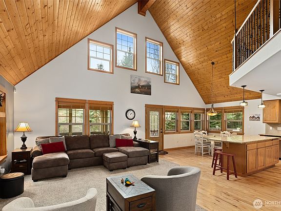 Discover a mountain getaway on 3 private acres a short distance from Lake Cle Elum. This fully furnished 4 bed 3 bath home offers both comfort and versatility. Step inside to enjoy the warmth of hardwood floors, vaulted ceilings, and an inviting open layout filled with natural light. The spacious 3-car garage and 480 sq ft. bonus room above with separate entrance and bath provides additional living space. Outside, the property is designed for endless entertainment w/covered porch, extended deck, hot tub and sitting area around the firepit. Conveniently located near Roslyn and Suncadia as well as scenic trails, this retreat is ideal for mountain living and recreation. Additional detached garage provides ample storage or future bunkhouse.