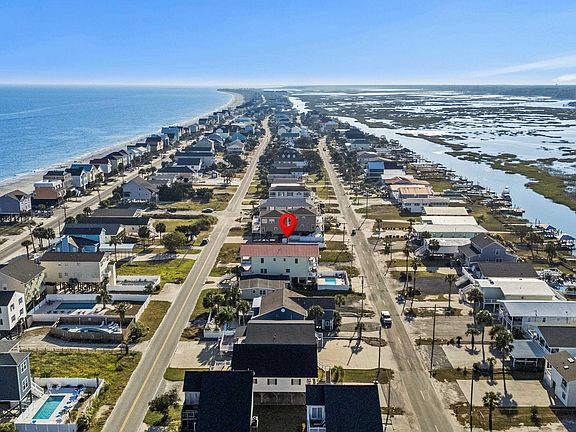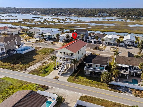 Welcome to Knot A Care, nestled at 290 Underwood Drive on the charming Garden City Beach peninsula. This third row raised beach house is just a short walk to the beach, offering stunning ocean and creek views from its expansive front and back decks. Step inside to find an expansive, beautiful interior boasting hardwood flooring throughout. Elegant crown molding, chair molding, and wainscoting enhance the home's sophisticated appeal. The modern kitchen features stainless steel appliances, maple cabinetry, and Corian countertops, making it a delightful space for cooking and entertaining. The property encompasses six spacious bedrooms, each equipped with its own ensuite bathroom, ensuring privacy and comfort for family and guests alike. The master suite stands out with its luxurious tiled bathroom, complete with a marble whirlpool tub, double sink vanity, and separate shower. Additional features include an elevator servicing all floors for convenience, a golf cart garage with ample storage, and an in-ground saltwater pool situated within a fenced yard for ultimate privacy. With over 3,800 heated square feet, the home is designed for maximum comfort, highlighted by oversized rooms. Exterior upgrades include maintenance-free vinyl railings and siding, along with a metal roof, providing long-term durability. Ample parking space is available, accommodating beach visitors and family gatherings. Conveniently located within walking distance to the pier and the downtown section of Garden City, this property offers not only a well thought out floor plan, but also a lifestyle of leisure and entertainment. Knot A Care is being sold fully furnished, making it an inviting turn-key residence or vacation rental opportunity. Experience the perfect blend of luxury and location in this spectacular beach house!