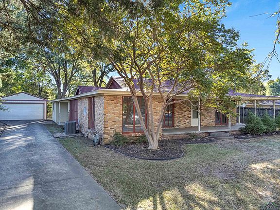 This is a find ! Come see this 4 bedroom, 1.5 bath home in Pine Tree ISD ! It is move in ready with 2 living areas and a separate dining space, as well as, a flex space that could be used as a breakfast nook. The 4th bedroom would be ideal for a home office with an exterior door. Kitchen is open to the den with a fireplace. Large beautiful windows throughout provide a light and bright atmosphere. There is a sweet wrap around front porch, large private backyard that is almost completely fenced and a detached 2 car garage. Make it yours today !