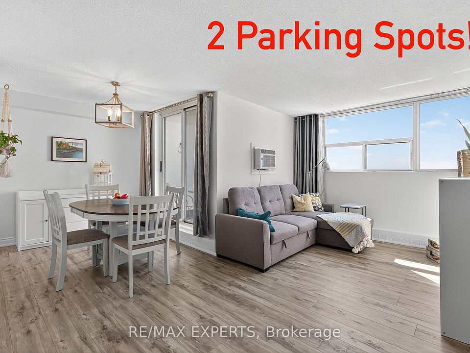Stop your search now! This is the one! Rare 2 Parking Spaces! Whether you're a first time buyer or trying to stop renting, this one bedroom condo is exactly what you need! Easily control your cash-flow with heat/hydro/water included in your utilities! Freshly painted, clean, spacious, and with a great view! This one bedroom unit has been lovingly maintained and is move-in ready. Spacious Living and Dining area and a generous sized bedroom give you lots of space to unwind and grow. Enjoy lots of natural sunlight through the large windows. Unit comes with 2 parking spaces for you and your other vehicle! Simply move in, unpack and enjoy your new life at home. Amenities include an outdoor pool, Basketball and Tennis Courts, playground, visitor parking, a gym, party room and library.