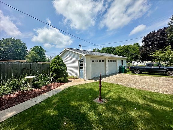 Step into this beautifully maintained two bedroom, one bath home, built in 1926, and experience a perfect blend of classic charm and modern convenience. The spacious living room and dining room present a welcoming atmosphere for both relaxing and entertaining. The enclosed front porch provides versatility as an extra bedroom or a cozy sitting area. The galley kitchen offers oak cabinetry, newer white appliances, and black countertops. The property also features a partial basement, equipped with a sump pump, potential for storage or future finishing. Outside, enjoy the meticulously cared for patio and partially fenced yard. The 2 1/2 car detached garage provides ample parking and a workshop area. Updates: stove-2014, refrigerator-2017, dishwasher-2024, washer/dryer-2011, roof-2019 (Central Roofing), furnace-2010, water heater-2009. Schedule your showing today!