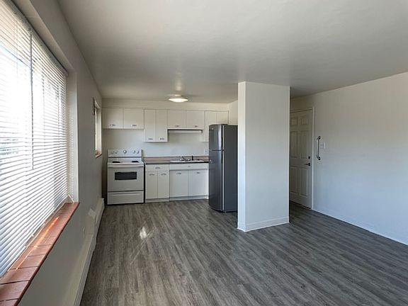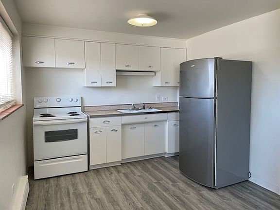 SIZE - 714 square feet - second floor - 2 bedroom - 1.0 bath - 9 unit - 3 story apartment building LIVING ROOM - 14 x 15 plus coat closet KITCHEN/DINING - 10 x 10 with refrigerator, electric range BATHROOM - 5 x 10 with tub/shower BEDROOM # 1 - 12 x 12 plus closet BEDROOM # 2 - 10 x 10 plus closet LAUNDRY - common area coin washer & dryer UTILITIES...Tenant pays electric - Landlord pays gas hot water heat, hot & cold water, sewer, trash PARKING - off street unassigned space AMENITIES - carpet & vinyl flooring - window blinds REQUIREMENTS - Renter's insurance - Property does NOT accept smoking, satellite dishes, dogs or Section 8 housing. PET - one cat with $300 non-refundable deposit + $25 monthly pet rent Listed monthly rent with one year lease. Add $50 monthly rent with six month lease.