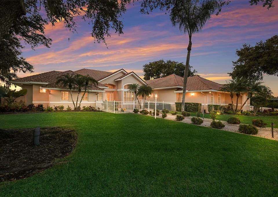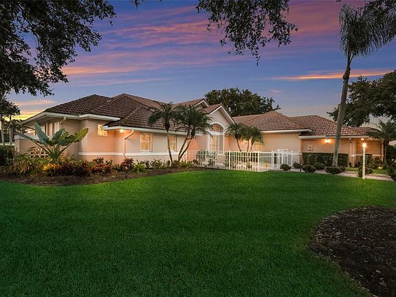 Exquisite Laurel Oak Country Club estate with panoramic golf and lake views. Experience refined luxury and timeless elegance in this spectacular residence in the exclusive, guard-gated Laurel Oak Country Club community. Overlooking breathtaking lake and fairway vistas, this 4,095-square-foot home (5,629 total) blends sophisticated design with comfortable Florida living. Enter inside to discover a flowing open floor plan filled with natural light, high ceilings and designer finishes throughout. The updated kitchen is a chef’s dream, featuring custom cabinetry, premium appliances, and a spacious island ideal for entertaining. The family room, complete with a cozy fireplace, opens seamlessly to the expansive lanai, creating the ideal indoor-outdoor living experience. The primary suite is a private retreat, boasting a generous sitting area, spa-like bath with a soaking tub, dual vanities and a walk-in shower. The second bedroom serves as a luxurious guest suite with its own beautifully appointed bath, ideal for visitors or extended stays. Outside, enjoy sweeping views of the golf course and lake from your heated pool and spa, surrounded by lush landscaping and multiple seating areas for relaxation or alfresco dining. The oversized three-car garage provides ample space for vehicles, storage and golf gear. In one of Sarasota’s premier golf communities, this home offers access to two championship golf courses, tennis, pickleball, fine dining and an active social calendar, all just minutes from world-class beaches, shopping and cultural attractions. Luxury, lifestyle and location come together seamlessly in this Laurel Oak masterpiece.