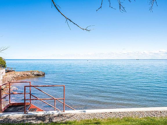 Located on Lake Superior, this 5 bed, 4 bath, meticulously maintained, sprawling brick estate offers 200 feet of shoreline and sits on over 2 acres of a park-like yard. There are stunning views from nearly every room. The bright great room features a gas fireplace and expansive windows framing the lake’s beauty. This home is perfect for entertaining. There is a large dining room and a spacious eat-in kitchen, which boasts granite countertops, dual ovens, and a butler’s pantry. A cozy den features built-ins and a second fireplace. The primary suite includes a newly remodeled bathroom with a beautiful shower. Additional bedrooms and baths are thoughtfully arranged on upper and lower levels. The lower level walks out to landscaped grounds, a private beach, a concrete lakeside patio, and a charming creek-side bridge. Don’t miss your once in a lifetime opportunity to own this one-of-a kind property!