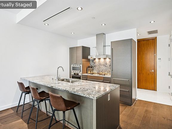 This contemporary condo in the prestigious Azure, located in the heart of Dallas, blends modern luxury with exceptional efficiency. The one-bedroom layout offers breathtaking views and abundant natural light, featuring a living room, kitchen, bedroom, two well-appointed bathrooms, and a convenient half bath. At its heart, an open-concept living area showcases light wood flooring and floor-to-ceiling windows that flood the space with sunlight. The chef’s kitchen boasts sleek cabinetry, high-end appliances, and a generous island with bar seating. The bedroom is a tranquil retreat with plush carpeting and a spa-inspired en-suite, featuring a massive double-sink vanity and an impressive walk-in shower. Bathrooms include floating vanities and designer fixtures. Clean lines and a neutral palette create a sophisticated urban oasis, enhanced by recessed lighting, a dedicated workspace, and ample storage. One assign garage parking space and then an additonal parking space available for $350 per month. The Azure offers 24-7 concierge service, a stunning lobby, and world-class amenities. Mortgage savings may be available for buyers of this listing. Schedule your private showing today to experience the epitome of luxury living!