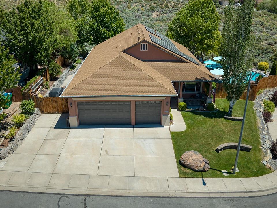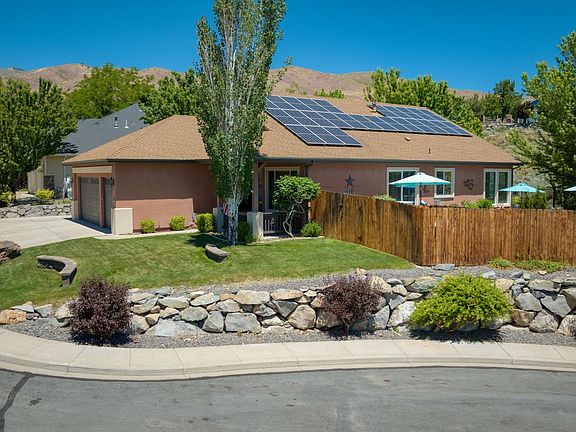 OPEN HOUSE 6/15/24 11-2PM VIEWS! Impeccably maintained, one owner, single story home on quiet cul-de-sac with backyard access to natural landscape walking path. Sweeping views of peavine mountain and downtown Reno from the paved pool patio. Saltwater pool with built-in electric keyed safety cover, and hot tub allowing for a peaceful and serene outdoor living space. New dishwasher, microwave and new entire home hardware. Insulated and finished three car garage with 4 foot extension. No HOA!, RV pad behind fence with 30 AMP RV outlet. Fully landscaped, wired outdoor/indoor surround sound, stubbed in gas BBQ. New solar panels on roof reducing electricity bill. Home is zoned for Melton Elementary, and Billinghurst middle school.There are too many features to list! This home has been lovingly customized and upgraded over the past 20 years, creating a unique and personalized living space that reflects the owners style and preferences. Resulting in a home that is truly one-of-a-kind.