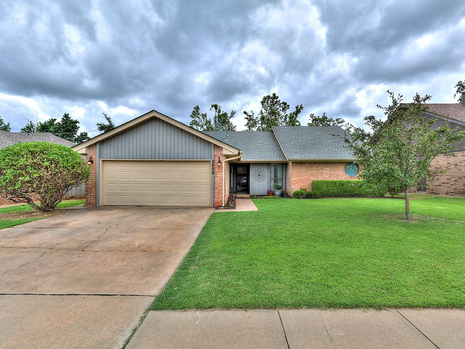Adorable home in the heart of Edmond! Walk into this updated entry and into your beautiful living area with brick fireplace. Spacious kitchen with bar and tons of counter space. Large master bedroom with 2 walk in closets! Split floor plan with 2 bedrooms, full bath, and laundry room. Walk through french doors to your patio and backyard, perfect for entertaining! Fresh, neutral interior paint and white trim throughout home. Exterior completely painted, new roof installation, and guttering added in 2013! Great neighborhood with walking trails, pond and park. 2 car garage and more makes this a wonderful place to call home!