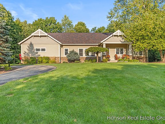 First Time Offered For Sale! Executive One Owner Custom Built Estate On a Tranquil Private Setting with Over 7 Wooded Acres, Surrounded by 200 Wooded Acres. Custom Built with Attention to Detail it Shows Like a New Home! Rich in Character, the Home Features Custom Woodwork, and Expansive Windows Framing Serene Views Throughout. The open-concept Main Level is Ideal for Entertaining, with a Chef's Kitchen Offering Granite Countertops, a Massive Island, Generously-Sized Walk-in Pantry, Ideal for all your Storage Needs, and a Brand-New Double Oven (2025). Other Features Include Main-Floor Primary Suite with a Tiled Shower, 10'' ceilings Throughout, Sunken Great room with a Real Stone Gas Fireplace, 3 Stall Side Load Garage. Major upgrades include a new Roof in 2025, and a New Furnace in 2024. MASSIVE Lower Level Workshop in the Walkout Basement with Space For An Additional 1-2 Bedrooms and Walkout Access to the Private Backyard. A Fantastic Location. Enjoy Nearby Trails, Tranquil Views and Outdoor Living just minutes from Downtown Ada, Lowell and Rockford, Minutes Away from Top Rated Murray Lake Elementary. Offering acreage, natural beauty, and an unmatched Location & Setting, This is a Truly a Special Property.