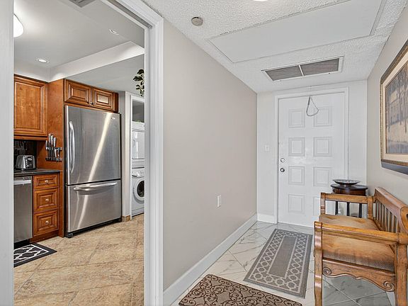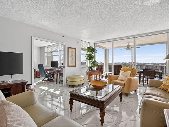 Stunning 2-bedroom, 2-bath condo on the 9th floor with breathtaking deep lake views! This elegant unit features marble flooring throughout with tile in the kitchen, and impact windows for peace of mind--and hurricane shutters on the balcony. Enjoy the rare convenience of an in-unit washer and dryer, as this building is one of the few that allows them. Brand-new air conditioning ensures comfort year-round. Relax by the sparkling community pool and take in the serene surroundings with the lake view. Move-in ready and perfectly maintained with a great location close to shopping and minutes to the beach.