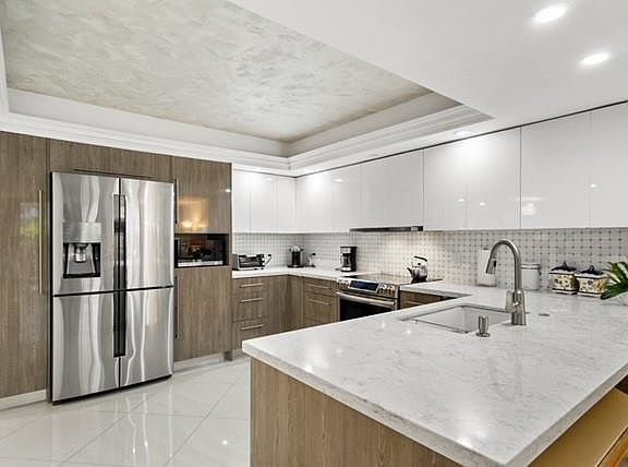 FULLY FUNDED RESERVES WITH NO ASSESSMENTS -40-YR Certification with SIRS, garage & concrete restoration ALL completed. 2024 roof & refurbished generator, 2025 cooling tower, Painting & waterproofing completed. All the major building SIRS items have been addressed. Absolutely stunning designer condo has natural light with Intracoastal and heated pool views. Nothing to do here but move-in! Open floor plan, 2 primary suites, split bedrooms with custom walk-in closets and lavish spa like baths. Tile flooring, custom pocket doors, fire sprinklers and W/D laundry room. Chef's kitchen, SS appliances, Quartz counter tops & recessed lighting throughout. Impact doors, 39' balcony & garage parking just steps from your unit. 2 pets 25 lbs. or less. Maintenance includes fiber optic internet & Cable.