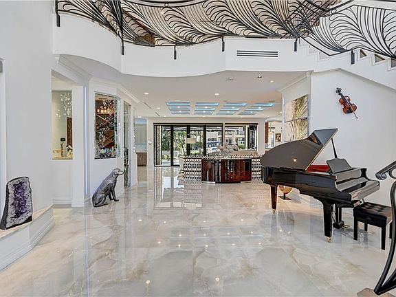 New elegantly furnished 3 story gated estate home. One of the most unique waterfront locations in Boca Raton. Located on the edge of the intracoastal. Breath taking intracoastal views from front & back. Nearly 10,000 sq ft of luxury living. Glass elevator, sealed waterfall interior entry. Chef's kitchen plus fully equipped catering kitchen. $300,000 Crestron automation system. 16 TV's. Furniture & art work are some of the highest level money can buy. Walk in wine room & bank vault type security room. Master suite w/fireplace, 2 sitting areas & juice bar. His & hers baths. Her bath has beauty salon. Theater w/state of the art equipment. Gym w/mini kitchen & steam room & built in shower. Pool w/fountains, heated spa & full summer kitchen. Rooftop w/spa & summer kitchen. Full house generator.