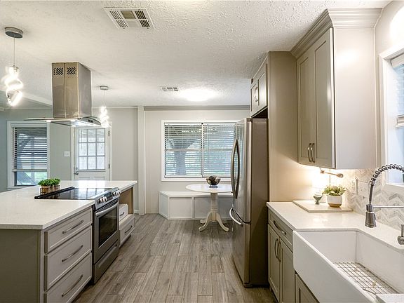 Zoned for Award winning Johnson Elementary! Discover your next home nestled in a serene cul-de-sac! This spacious 4 bed 2 bath house sits on an oversized lot. Step inside to a beautifully remodeled kitchen that boasts elegant quartz countertops, stainless steel appliances, new vent hood & charming farmhouse sink. Enjoy the convenience of new cabinets with full-extension, soft-close drawers & admire the exquisite tile work that complements the space. The kitchen also features a large refrigerator & offers an open flow into the inviting living room. Here, you’ll find a brick wood-burning fireplace complete with a classic mantle, perfect for those cozy nights in. New flooring in the master bedroom. The adjacent dining area is thoughtfully designed with a charming bench & built-in storage, making it an ideal spot for family meals and gatherings. Venture outside to your private, fenced yard from the comfort of your covered patio & enjoy the tranquility and space this oversized cul-de-sac lot provides. Additional highlights of the home include a recently updated roof (6 years old), new gutters, 2-inch blinds & solar screens on all windows to enhance energy efficiency. Make this delightful home yours & experience comfort, style, and peace in a wonderful quiet neighborhood setting. A 1 year Home Warranty comes with this home!