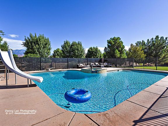 This beautiful custom dream home with Pine Valley views awaits you on a private high end cul-de-sac, perfectly positioned for the Southern Utah heat. The features and finishes are high end in every way. Gourmet kitchen with Wolf/ Subzero appliances. Custom granite, hardwood maple floors, Cherry and Knotty Alder cabinets. 1000 sq foot casita, 7 car garage including a 50' RV parking/ garage.