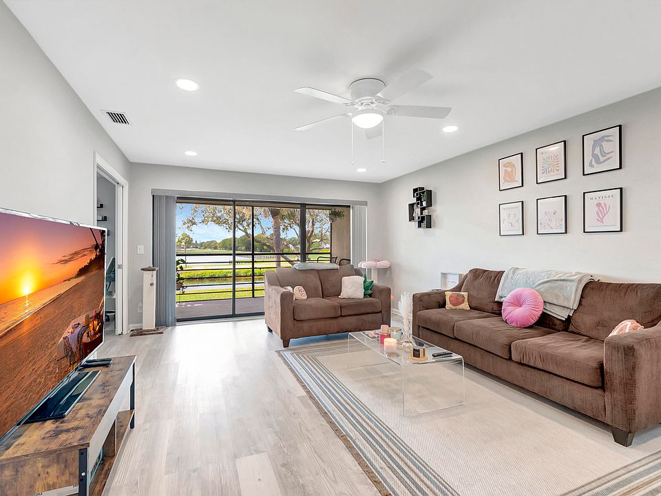 NEWLY RENOVATED, SECOND FLOOR, TWO BEDROOM/TWO BATHROOM CONDO WITH WATERVIEW OF DELAIRE COUNTRY CLUB GOLF COURSE HOLES 5 AND 6. GRANITE COUNTER TOPS WITH ALL NEW KITCHEN APPLIANCES. 2022 WASHER/DRYER, WATER HEATER, AND AC. BACK PORCH FACES WEST FOR BEAUTIFUL SUNSETS FROM YOUR HOME. HOA is $535 plus a $186 special assessment fee that is ending in October.
