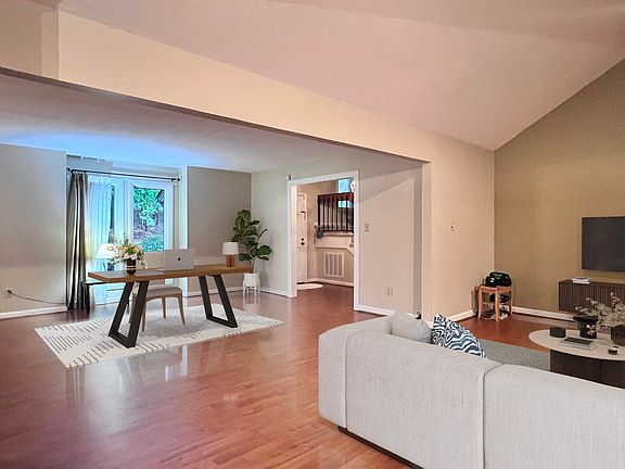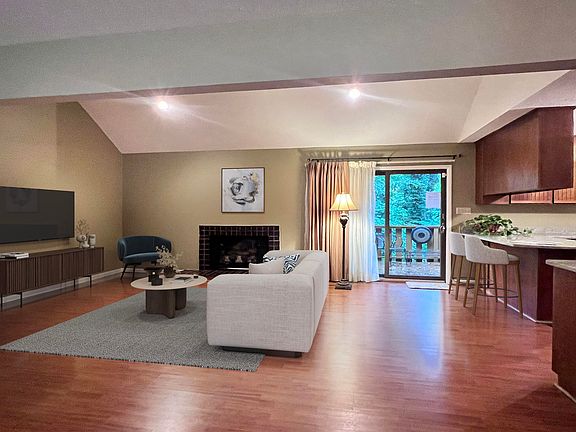 Rear deckVaulted ceilingsPrivate gardensNeutral bathGranite kitchen countersMature treesCorner lot