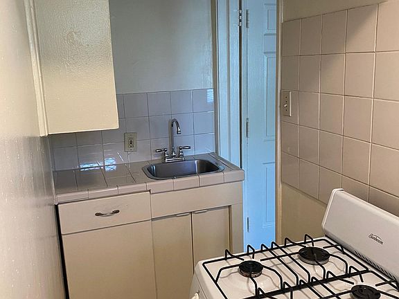 Large upstairs studio apartment in small quiet building. Includes stove and refrigerator Owner pays for water.