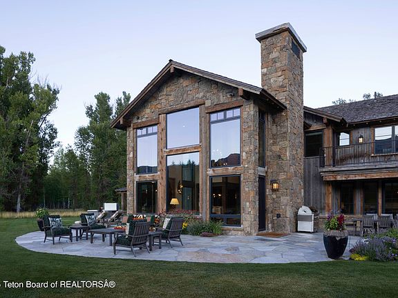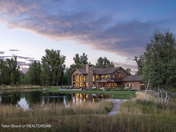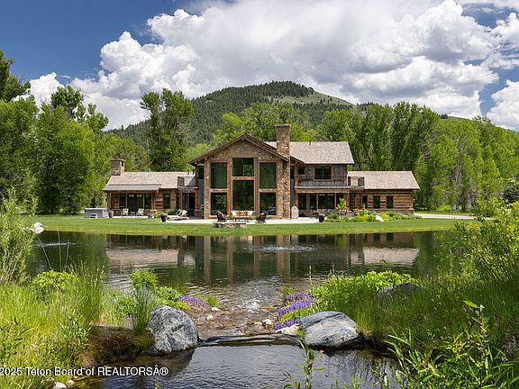 Situated on a beautifully landscaped 3.01-acre lot complete with a stocked trout pond and recirculating waterfall, you'll appreciate the peace and privacy this home provides. Miles of private Snake River frontage afforded to John Dodge owners are accessed via a short walk; plus, a 5-minute drive takes you to Jackson Hole Mountain Resort and Grand Teton National Park.