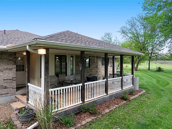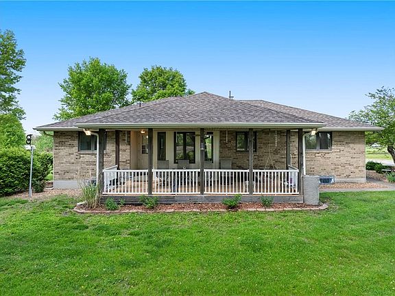 Exceptionally well-maintained, all-brick 3-bedroom, 2-bath home on 5 picturesque acres just outside of Harrisonville on blacktop! Enjoy peaceful country living with beautiful views and quick access to town. This home features a 1-year-old roof, roll-out windows, and a Hollywood-style bathroom for added comfort and style. The whole-home Generac generator adds peace of mind. A large outbuilding with electricity and a concrete floor offers the perfect space for a workshop, storage, or hobbies. Enjoy mornings in the cozy front sunroom and evenings on the covered back deck overlooking the scenic landscape. A rare gem that blends comfort, functionality, and rural charm in a prime location!