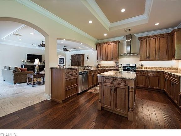 Imagine lifting up a charming newer Moorings property on enormous private lot and transplanting it west of 41 along quiet Vanderbilt Drive near beaches and Mercato, yet 1/3 of the price. Rebuilt home. Rarely seen outdoor living space and it was built just a few years ago. Outdoor kitchen with sink, dishwasher, mini frig and inset grill, fireplace. Stunning home with high impact glass, gas kitchen appliances, crown moulding, new bathrooms, and all new heated pool, spa that did not exist prior to a just a few years ago. Generously appointed travertine flooring throughout inside and outside the home (3 of 4 bedrooms carpeted), and much more. 1 mile north of Audubon. This is a one of kind home for entertaining inside and out. See aerial photos of the lot, the compound-like privacy of this lushly landscaped lot. Carrying costs of this community and this home are unusually low. Those who want to be close to it all and yet far from other homes finally have their answer here. Island kitchen with rich wooden cabinetry, built in closet system in master, 4 bedrooms, 3 1/2 bathrooms with one half bath on lanai and an additional shower room on lanai. i