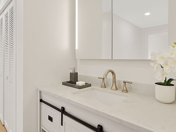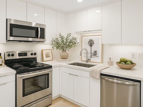 Blocks from the sandCustom cabinetrySleek and modern unitWood-style flooringQuartz countertopsFully updated kitchenStainless steel appliances