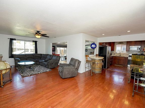 Adorable Home with some upgrades. Sunken Family room. Covered Patio. Dog Run. Existing RV Access. Concrete Base 11' Wide by 27' Long with Metal roof 11' High.
