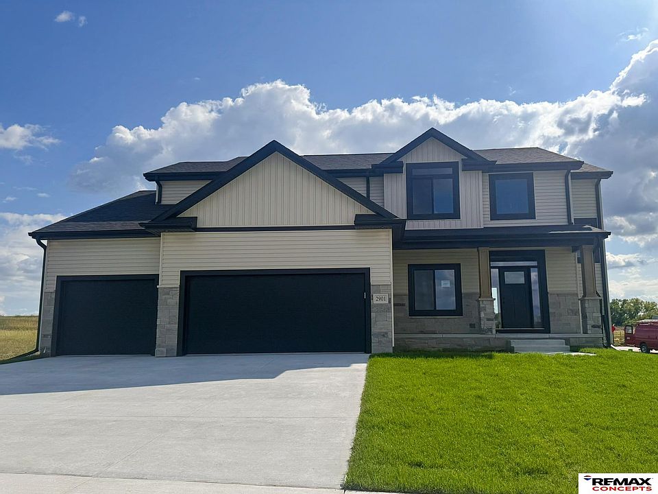 Contract Pending Fantastic 4 bedroom 2 story home in the desirable Iron Ridge neighborhood of south Lincoln. Large corner lot. Oversized 4 stall tandem garage with access to the backyard. Covered patio and a wonderful front porch with stone and cedar columns. Vaulted dinette ceiling filled with windows is one of the many features of this beautiful new construction home by Aspen Home Builders. The kitchen features a spacious butler's pantry, large center island, and an abundance of cabinet and countertop area as well. Mudroom with 1/2 bath. All 4 bedrooms on the 2nd level along with the laundry room. Primary suite features a lovely private full bath with double sinks and free-standing soaking tub. Huge walk-in closet! The basement is ready to finish upon a buyer's request. Full sod and underground sprinklers.