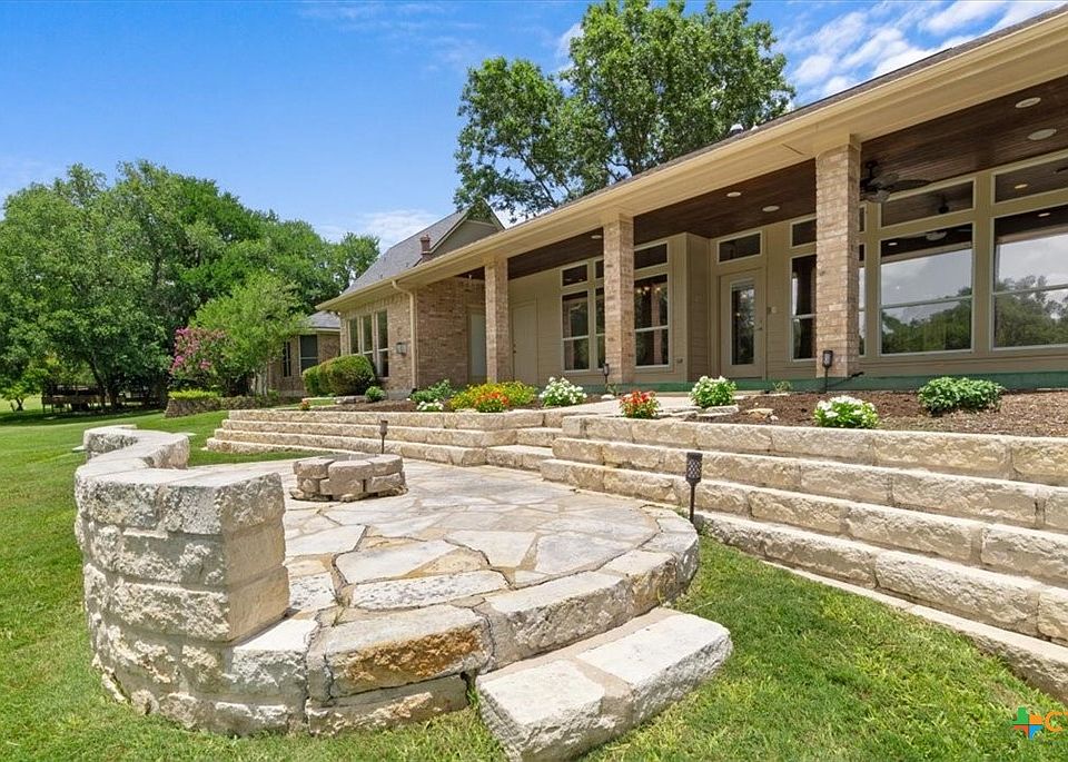 GOLF COURSE BEAUTY! NO HOA! Gorgeous custom-built home with 3 bedrooms + Office in a functional split floorplan. 2 FULL and one HALF bath. Large windows line the living, dining and primary bedroom to allow the GORGEOUS GOLF COURSE and WILDLIFE VIEWS to be enjoyed inside and out. Recent updates include interior paint, carpet, roof, and PLANTATION SHUTTERS. The covered back patio doubles as a PUTTING GREEN and features a stone path to multi-level seating and power available for hot tub and gas fire pit. Beautiful indoor living spaces include TWO GAS FIREPLACES in living room AND primary bedroom with stone accents, engineered wood and travertine tile. Primary BATH has split vanities, large walk-in shower and soaking tub, and customized walk- in closet. KITCHEN has granite, knotty alder custom-built cabinets and a large center island with extra storage. Oven and microwave are built in with an additional warming drawer and WALK IN PANTRY. Garage has Epoxy flooring, TWO HOT WATER HEATERS, water softener and large storage closet. GOLF cart to downtown Salado dining and shopping and MILL CREEK GOLF CLUB. 30 min from Georgetown. 40 min from Austin! Don’t Wait to See!