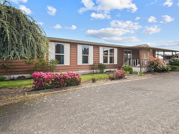 1975 double wide manufactured home in sought after 55+ park will not disappoint! The home features a formal living area with built-ins, a family room with a wet bar and slider to a covered patio, a large kitchen with 2 bowl sink, double ovens, electric cooktop, lots of cabinets, LED lighting open floor plan, new interior paint last year, composition roof approx 10 years old, jacks and tie downs in place, double pane vinyl windows installed approx 12 years ago. Electric furnace with heatpump, electric hot water heater. The home as 1536SF and 2 bedroom, 2 full baths and a utility room. The primary suite features large mirrored closet, bathroom with dual vanity, built-ins, oversized tub and walk-in shower. The second bedroom is large and has a good size closet, there is a door between this bedroom and the 2nd bathroom. The utility room has access to the 2nd bath and the carport. This well-maintained home is the one you have been waiting for!! The park dues cover water, sewer, garbage, access to the clubhouse and the new pickleball courts! Hurry you don't want to miss this one!!