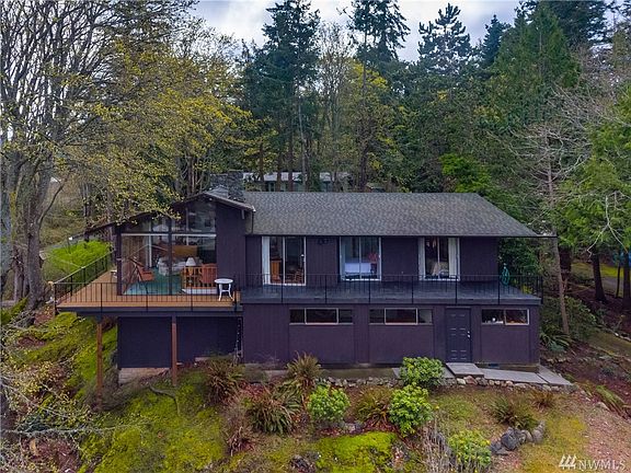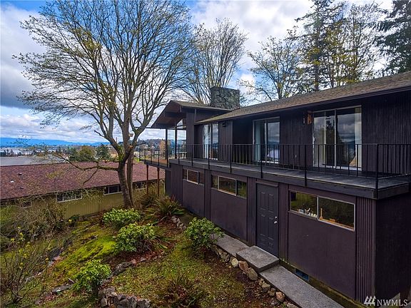 Top of the Rock! Rare opportunity , 1+ Forested Acre w/in city limits. Enjoy privacy w/ panoramic views of Bay, Channel and Mountains! Consider the possibilities of updating this well cared for Mid-Century home. Large lot backs up to Conservatory land. Private Circular drive leads to stairs & entrance. View captivating sunrises of Mount Baker from this 3 BD, 1.75 BA home , including expansive wraparound deck for entertaining, vaulted ceilings, 2 stone fireplaces, plus garden/sun room and more!