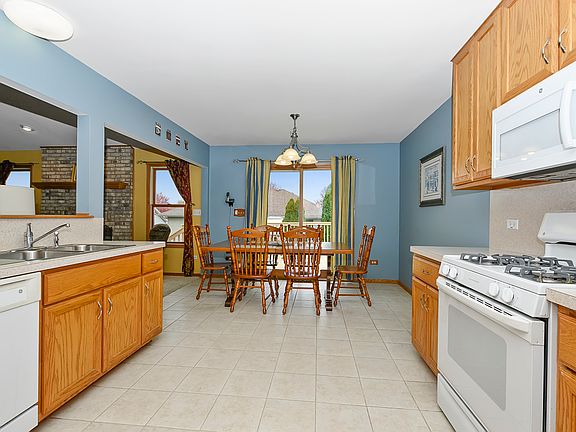 Lovely true ranch home lightly lived in and meticulously cared for by original owners. Upgraded during construction with english basement, concrete driveway, expanded garage (5 extra feet), rough-in bath in the basement and 42in cabinets in the kitchen. Great floor plan with no interior steps and no wasted space. Great room with brick fireplace and beamed ceiling adjoins the kitchen and dinette for easy entertaining. Kitchen has ample cabinets and counters. Spacious dinette area accomodates a large table. Sliding glass doors off the dinette leads to new deck and landscaped yard. Main level laundry just off the kitchen has a sink, storage cabinets and walk-in pantry. Spacious master suite with private bath and walk-in closet. Additional two bedrooms share a hall bath. Ceiling fans in all rooms. Great storage and closets. The basement has natural light, rough-in bath and is ready for your finishing touches. Great home in great neighborhood. New Lenox grade schools. Roof, water heater, a/c, humidifier and sump pump all replaced within the last two years. Quick close possible.
