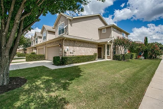 EXCEPTIONAL CORNER UNIT TOWNHOME IN GREAT LOCATION NEAR GREENBELTS & COMMUNITY POOL! 2 Spacious BRs - 2.5BAs - LIVING - Dining & Breakfast Area - 2Car Garage! Features: New wood plank flooring & carpet, Kitchen cabinetry & downstairs base boards just painted a crisp white, neutral color thru-out home! Kitchen has Brand New High-End SSteel aplnces, inclng BOSCH dishwshr & self-cleaning oven. Two story soaring ceiling! 2 lrg stacked windows for plenty of natural light. Lrg Master Ste offers 2 WICs, shower & separate tub. Fenced back patio with area for grilling. Fence has a convenient gate to greenbelt. Near Hwy 121, US75, shopping & entertainment. Frisco ISD. Per owner, HOA includes front yard maintenance.