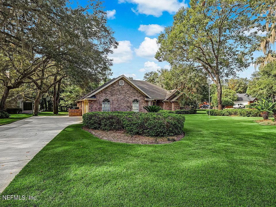 Welcome home! Peace and tranquility of the country await in this one-story, all-brick home nestled in The Ravines gated community, situated on one of the largest estate lots, at .92 acres, yet affords the owner the convenience of nearby schools, shopping and hospitals. The home backs up to a wooded nature-filled area, and presents an attractive landscaped curb appeal. Walking in the front door, you are greeted with a bright, open foyer leading into a spacious family room with a floor-to-ceiling brick surround, gas fireplace, flanked by a wall of windows and patio door which lets you soak in nature. The large, 456 sf screened-in porch with vaulted ceiling, just off the family room, includes an outdoor grilling area, cabinets and a sink, and is the perfect serene place to relax and enjoy the deer, wild turkeys, and other wildlife that visits the yard. Adjacent to the foyer, the formal dining leads to the well-equipped kitchen with double ovens, plenty of cabinets, a desk and a roomy casual dining nook providing even more views of the expansive backyard and its natural beauty.