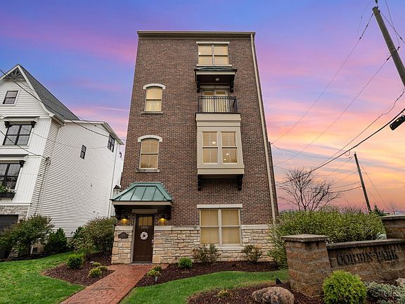 Embrace a lifestyle of ease in this impressive all-brick home, boasting breathtaking views of the river and city. An elevator conveniently connects the oversized tandem garage to all four levels! The spacious, light-filled rooms come with numerous updates.On the second floor, you'll find a generous kitchen that opens to the dining area and a great room featuring a fireplace, along with a private office. The third floor offers two guest rooms: one with an ensuite bathroom and the other with access to a covered porch, plus a hallway bathroom and laundry room to complete this level. The fantastic fourth floor showcases a divided primary bedroom with an updated bathroom and walk-in closet. It also includes a living area with a fireplace, a wet bar adorned with Rookwood tile, and a balcony that presents stunning views of the river and city, both day and night.