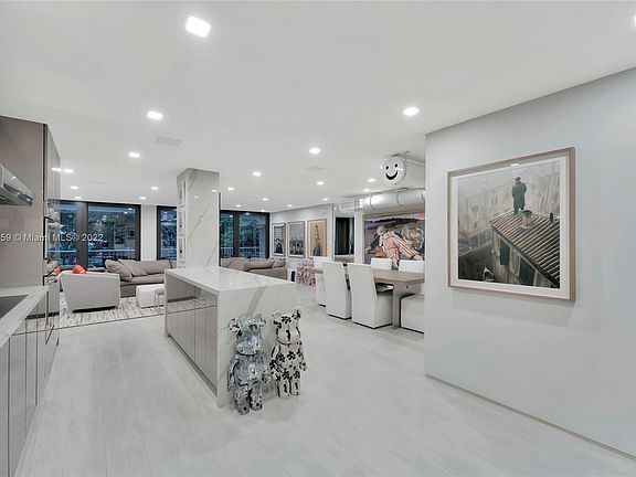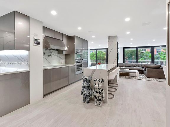 This former 2-bedroom condo has been converted to a spacious 1-bedroom with 2 full bathrooms and a large living area. Nearly every inch of this stunning Coconut Grove condo has been custom-designed with Restoration Hardware furnishings, a Thermador kitchen with quartz countertops, Franke sink, and Iowa Wood Harbor cabinetry. The White Russian Oak porcelain tile floors flow throughout the entire home and seamlessly onto the 10ft deep balcony. The balcony spans the width of the condo and features WinDoor impact windows and sliders, along with LED lighting. Comes with 2 parking spots, a 3-year-old HVAC system, and tankless water heater. Both bathrooms include 5-star Toto toilets and the primary bathroom has a hidden shoe closet that holds 100 pairs.