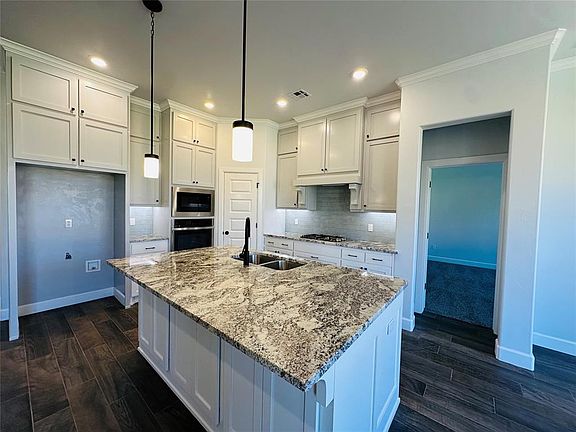 The kitchen showcases granite countertops, built-in appliances, a vent hood over the cooktop, and elegant finishes that balance style and practicality. Designed with everyday convenience in mind, the primary closet wraps around into the laundry room, offering seamless functionality. Additional highlights include a covered back patio, storm shelter, full fence, blinds, sprinkler system, and a large backyard for outdoor enjoyment.