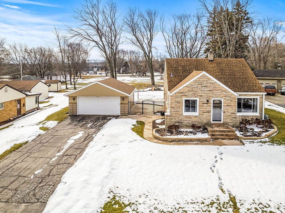 Welcome to this beautiful stone Cape Cod, featuring 3 beds and 1 bath on nearly an acre lot! An abundance of natural light shines in as you walk through the front door. Updated kitchen with newer quartz countertops, cabinets & SS appliances. Beautiful dining room built-ins. 2 bedrooms on the main level and a spacious master on the upper. Unfinished lower level is waiting for your own personal touch. Detached 2-car garage features a passthrough for easy access to the partially fenced-in yard & patio area. Don't forget about the large garden past the fence to grow your very own vegetables! Quick access to freeway and shops. This home is ready for you to move in!