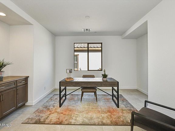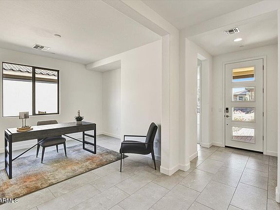 This brand-new Acacia floorplan home in Trilogy at Verde River features 2 bedrooms, a den, and 2.5 baths. The chef-inspired kitchen offers quartz countertops, stained cabinets, and soft-close drawers. The kitchen opens to a bright great room highlighted by a 15' multi-slide door. The primary suite includes a bay window, a tiled shower, dual sinks, and a walk-in closet. With upgraded flooring, a full landscape package, and a large covered patio surrounded by Sonoran plants, this home offers effortless desert living.